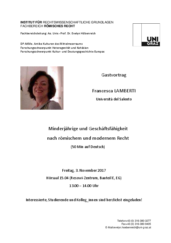 Universität Graz Rechtswissenschaften Institut für Rechtswissenschaftliche Grundlagen Neuigkeiten Gastvortrag von Prof. Francesca Lamberti