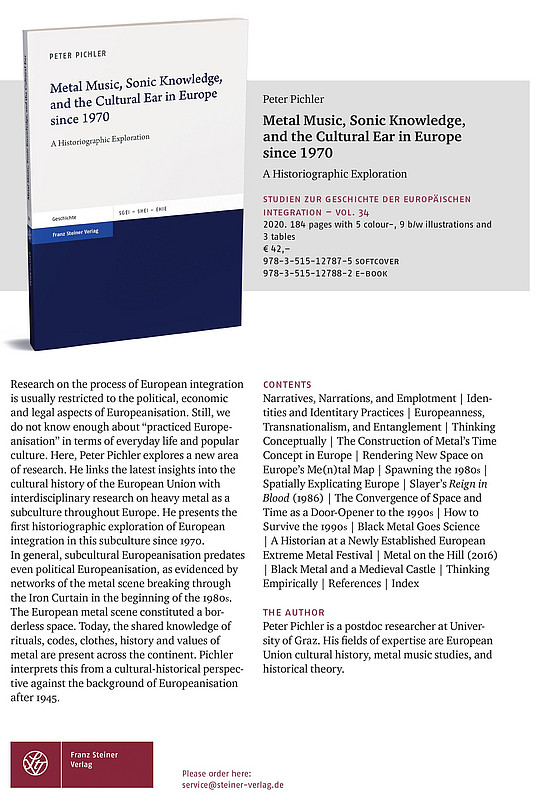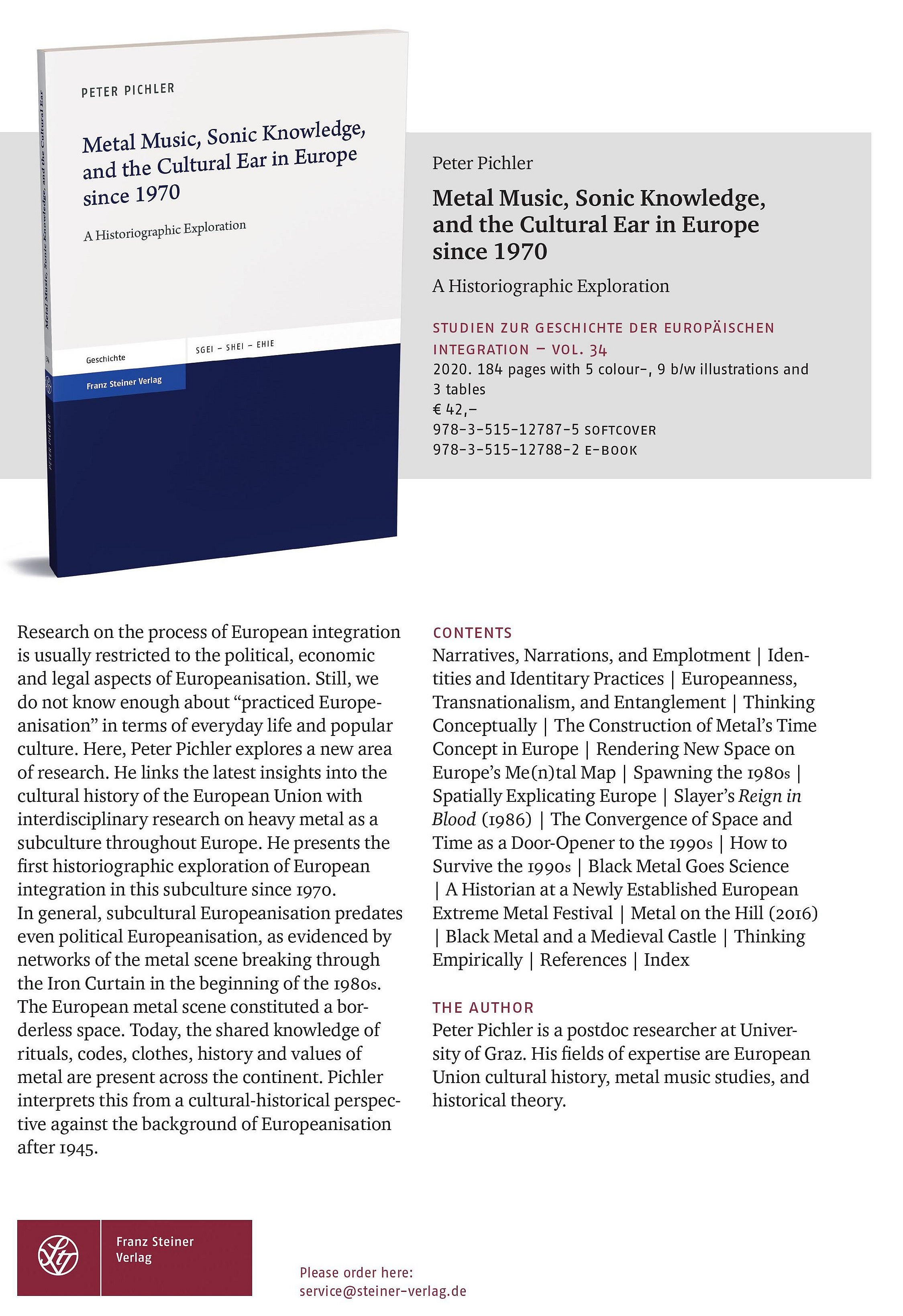 Universität Graz Rechtswissenschaften Institut für Rechtswissenschaftliche Grundlagen Neuigkeiten Neuerscheinung: Metal Music, Sonic Knowledge, and the Cultural Ear in Europe since 1970, Dr. Peter Pichler