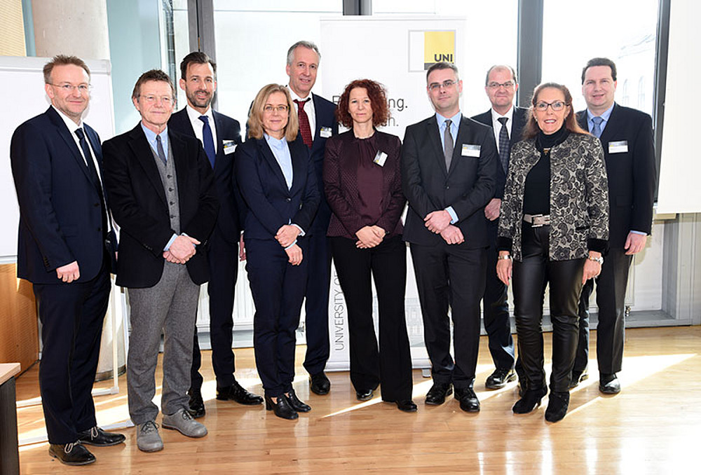 Christian Bergauer, Günther Löschnigg, Michael Pachinger, Elisabeth Staudegger, Dietmar Jahnel, Sonja Janisch, Bernhard Horn, Clemens Thiele, Gabriele Schmölzer und Michael Sonntag (v.l.). Foto: Uni Graz/Kastrun.
